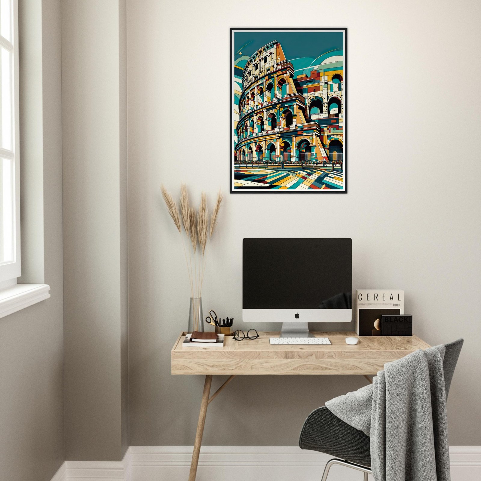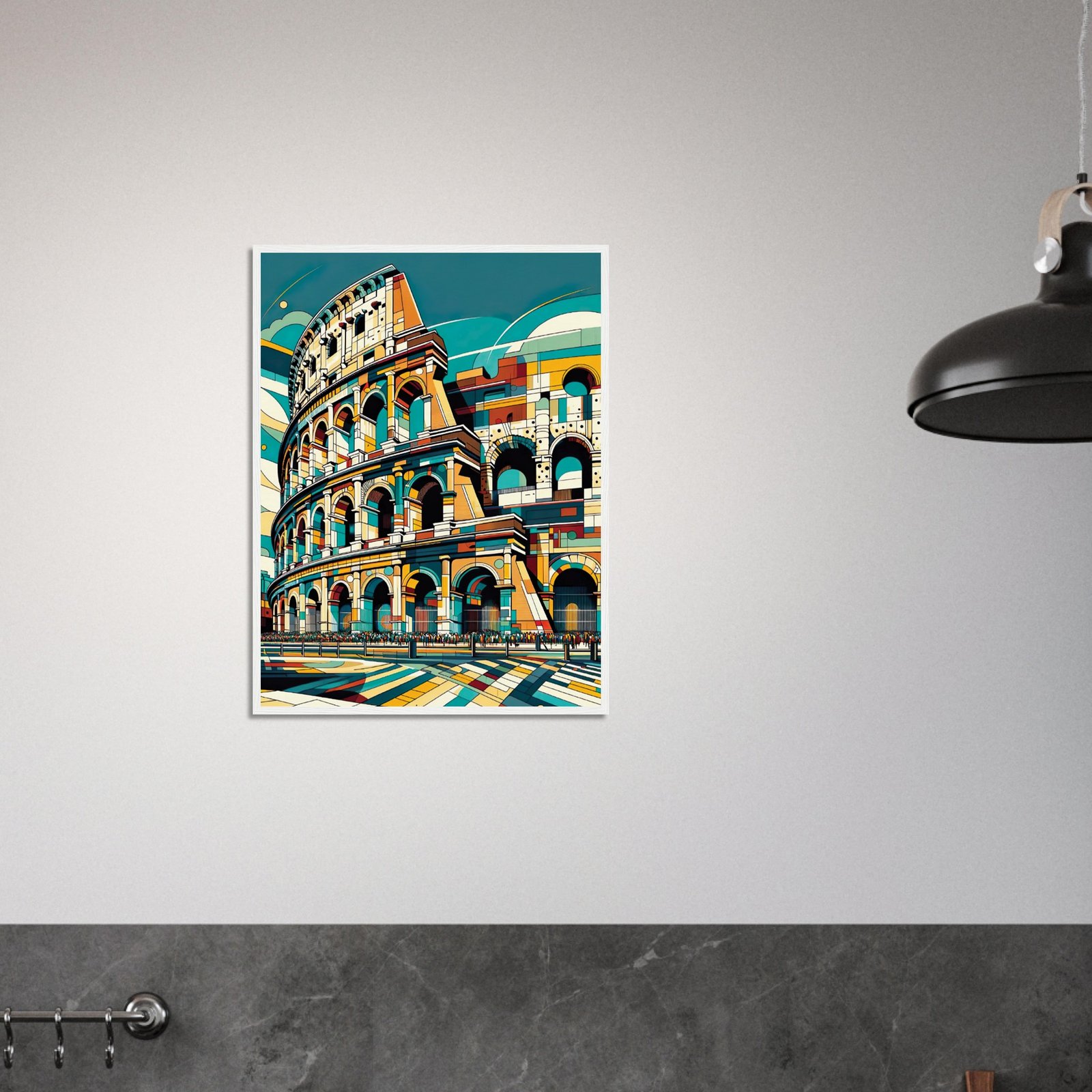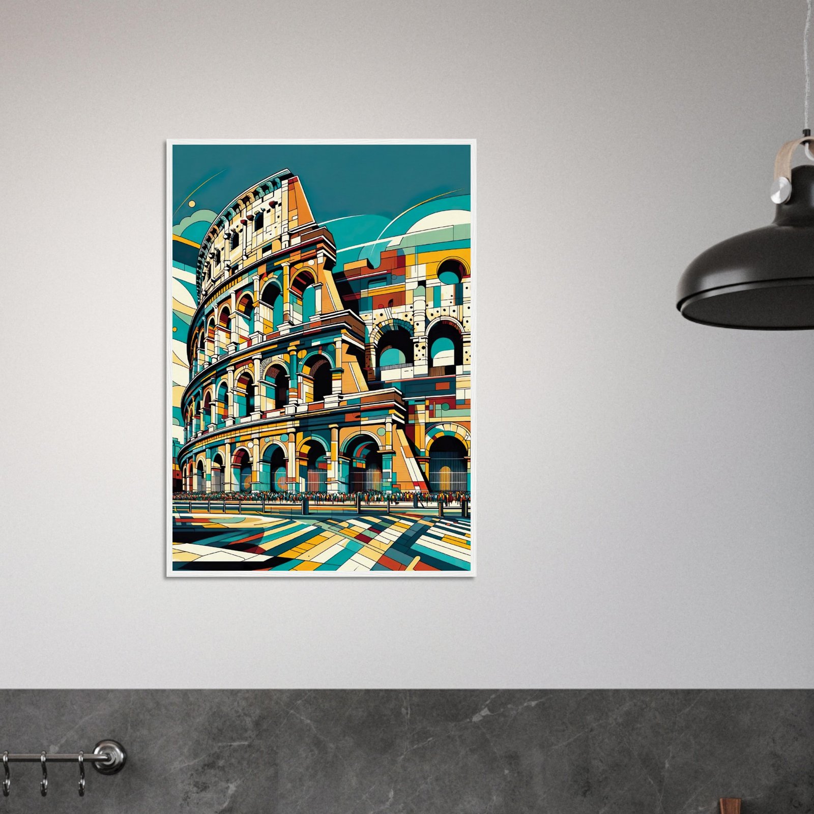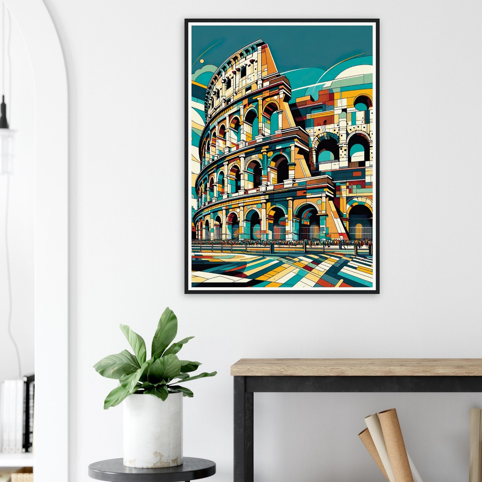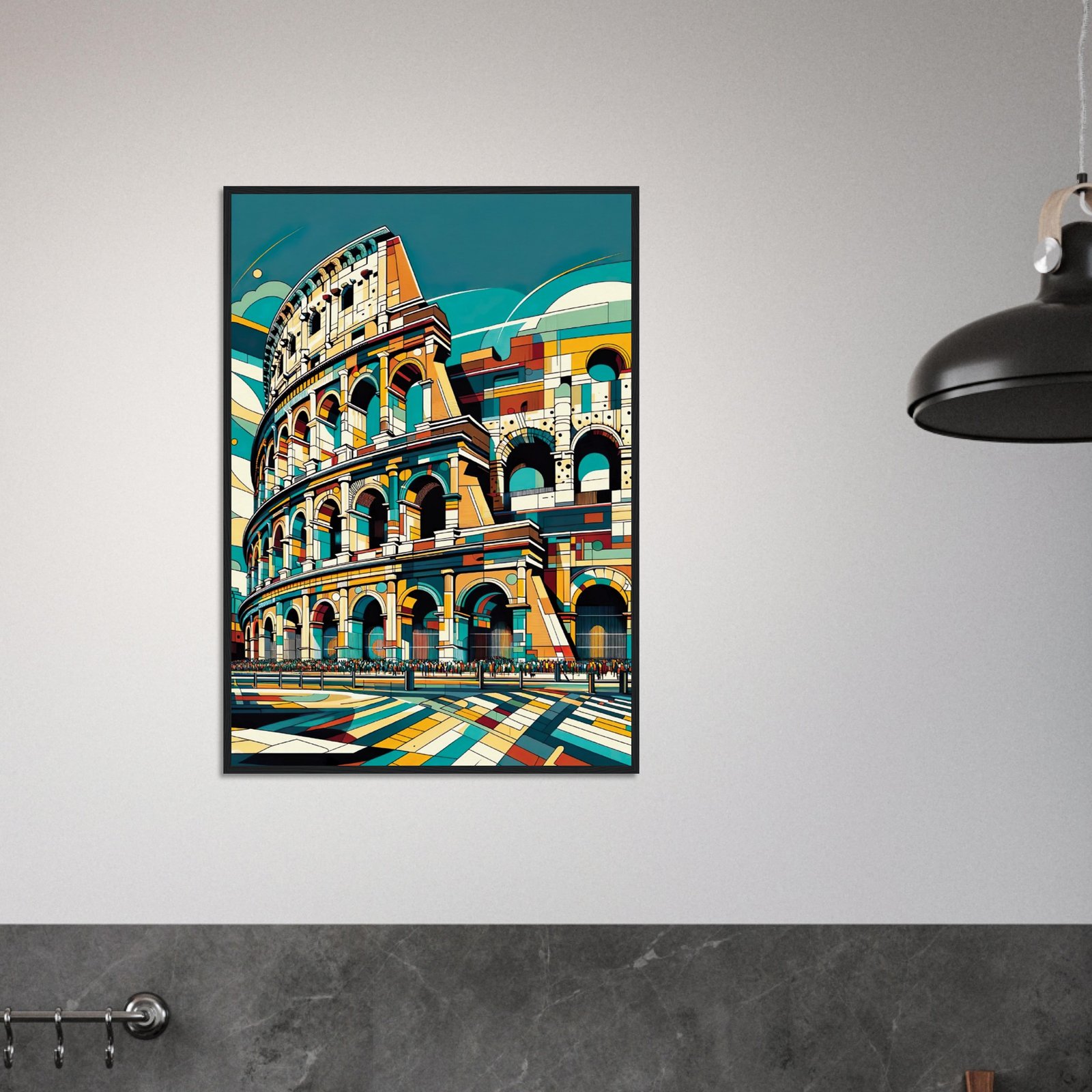 Capture the grandeur of ancient Rome with this cubist-inspired framed poster of the Colosseum in Italy. A modern artistic twist on a historic landmark, perfect for adding a touch of sophistication to any space.